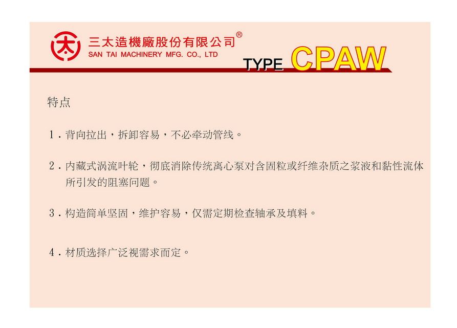 用途:适于抽送家庭污水、粗纸浆(内含塑料带、草绳、杂物)